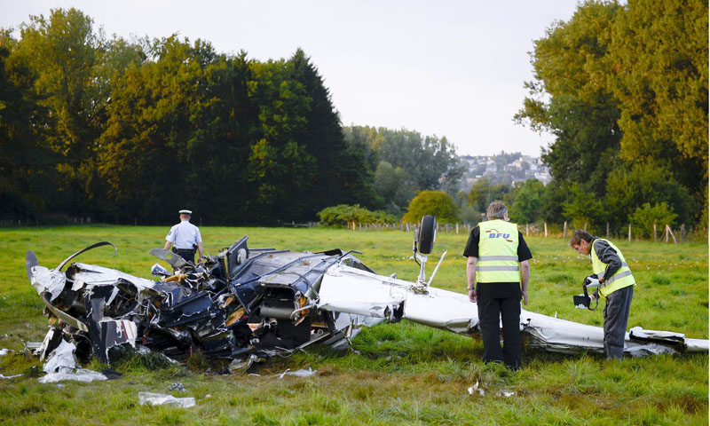 crashed plane in Froendenberg, western Germany on August 27, 2013. Five
