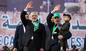 leader Ismail Haniyeh said in a combative speech that the US and Israel